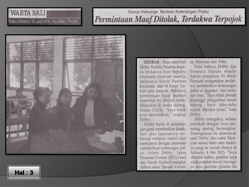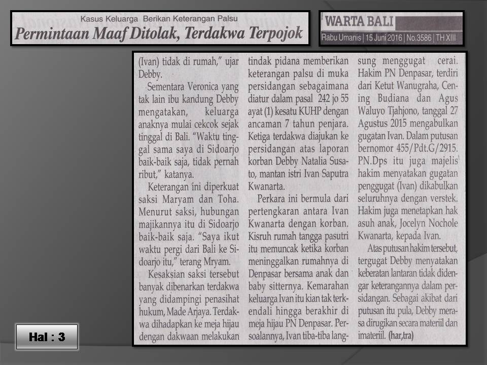 Kasus Keluarga Berikan Keterangan Palsu- Warta Bali 15 Juni 2016